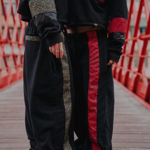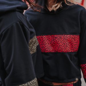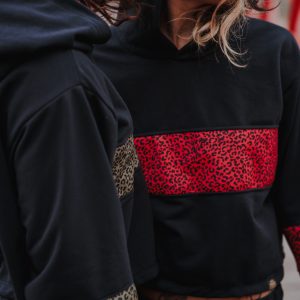 Combinada con estampado leopardo verde y línea polipiel elastica en las mangas.