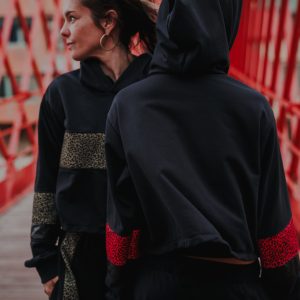 Sudadera tipo crop hecha de felpa negra, más finita, de entretiempo.