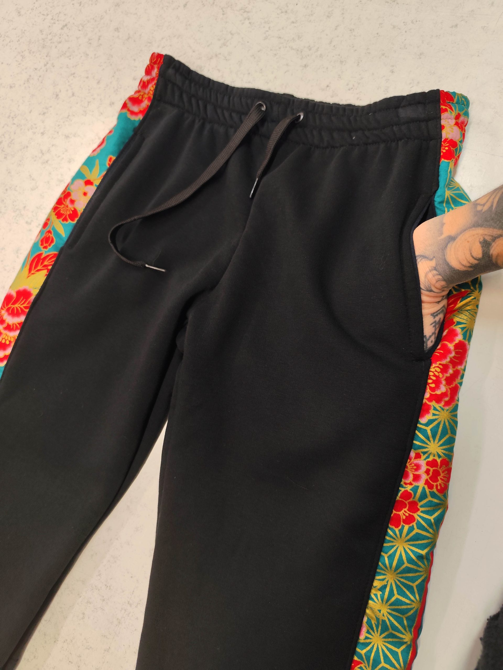 Tira peonies on green (al ser un diseño bastante amplio, puede ser que varie el diseño del lateral en cada pantalón)